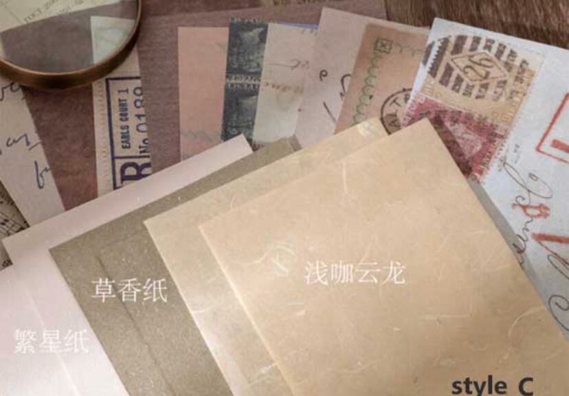 便箋としても、コラージュ素材としても、手帳デコ、スケジュール帳、日記帳、ガイドブック、封筒、小袋やお手紙のコラージュや、贈り物、プレゼントのラッピング、手作りお菓子や小物の包装、空箱などどこでも使え頂けます。また、シールやスタンプでアレンジ自在です。