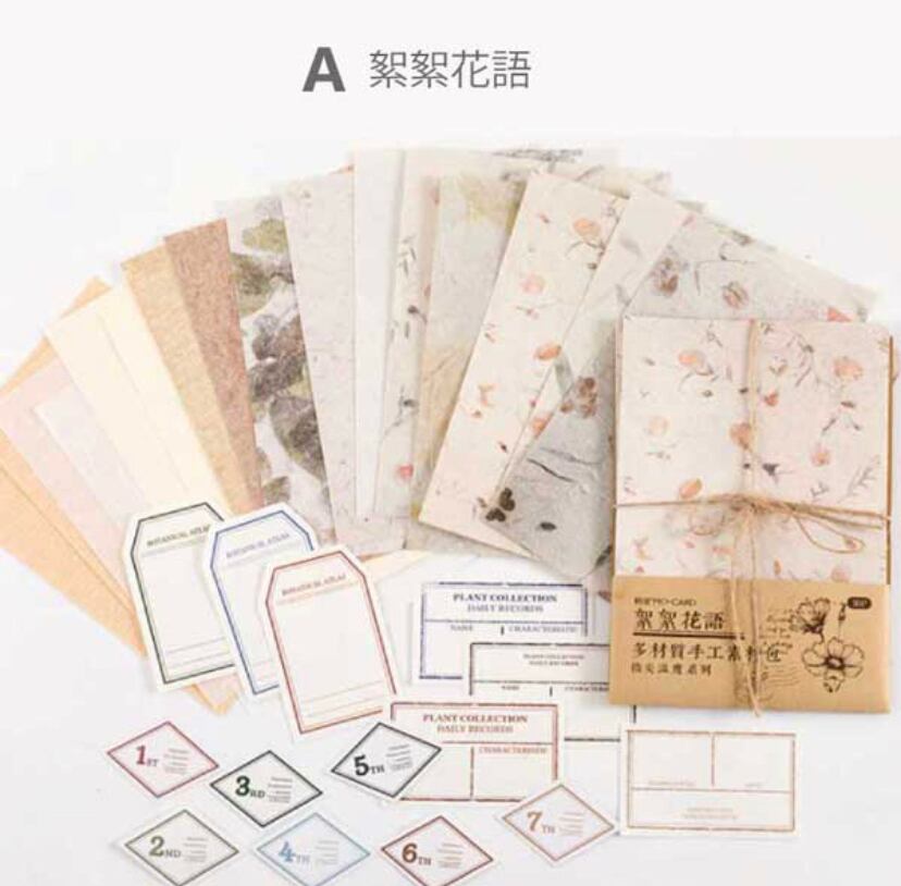 多素材の背景紙とラベルのセット商品です。