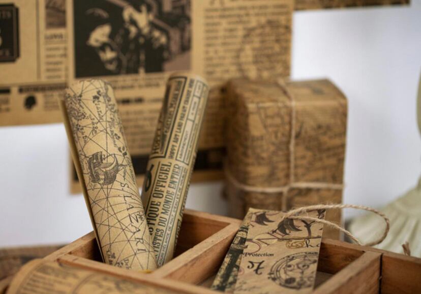 便箋としても、コラージュ素材としても、手帳デコ、スケジュール帳、日記帳、ガイドブック、封筒、小袋やお手紙のコラージュや、贈り物、プレゼントのラッピング、手作りお菓子や小物の包装、空箱などどこでも使え頂けます。また、シールやスタンプでアレンジ自在です。